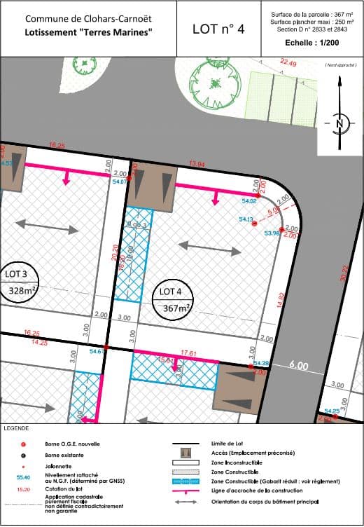 Ce terrain de 367 m² est livré borné et viabilisé (assainissement collectif). 250m² de surface plancher constructible – Dépôt de PC immédiatement possible